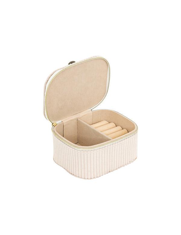 Imaginez votre chambre transformée en un havre d'organisation grâce à la Boîte à bijoux Enya en velours beige de la marque Atmosphera.