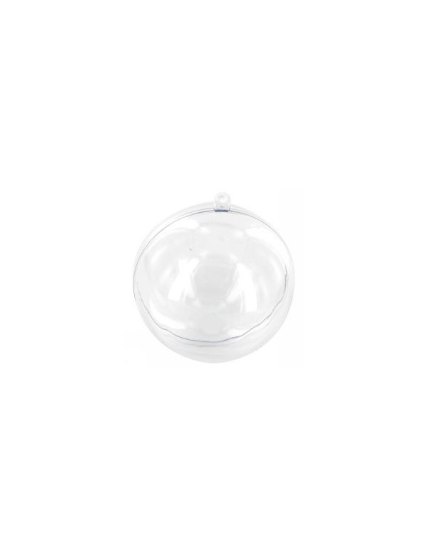Boule en plastique transparent de 8 cm. de diamètre composée de 2 partie à encastrer l'une dans l'autre.
