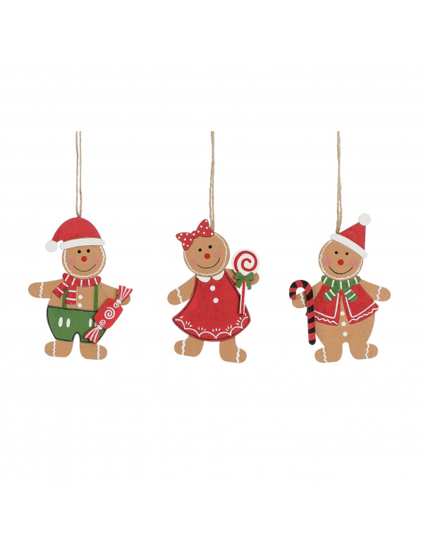 Suspension en bois pour décoration de sapin, forme de personnage de pain d'épice.