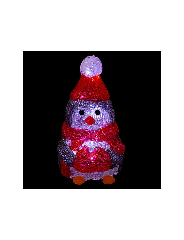 Personnage de Noël lumineux en acrylique d'environ 19 cm. de haut, fonctionne à piles.