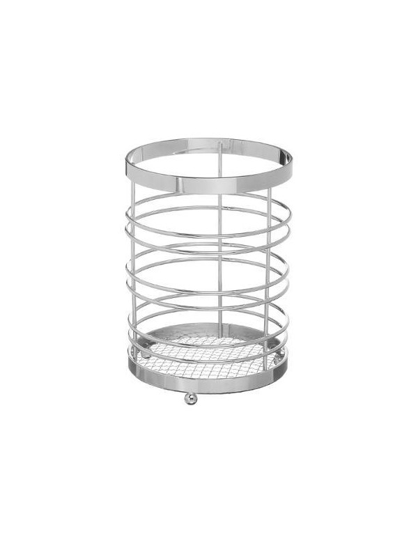 Pratique ce pot range couverts rond en métal filaire chromé avec son design ligne.