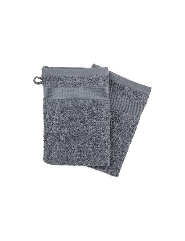 Lot de deux gants de toilettes Atmosphera 100 % coton de couleur gris foncé.