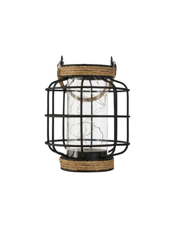 Atmosphéra - Lampe Lanterne en métal noir et microled filaire, hauteur 17,5 cm.