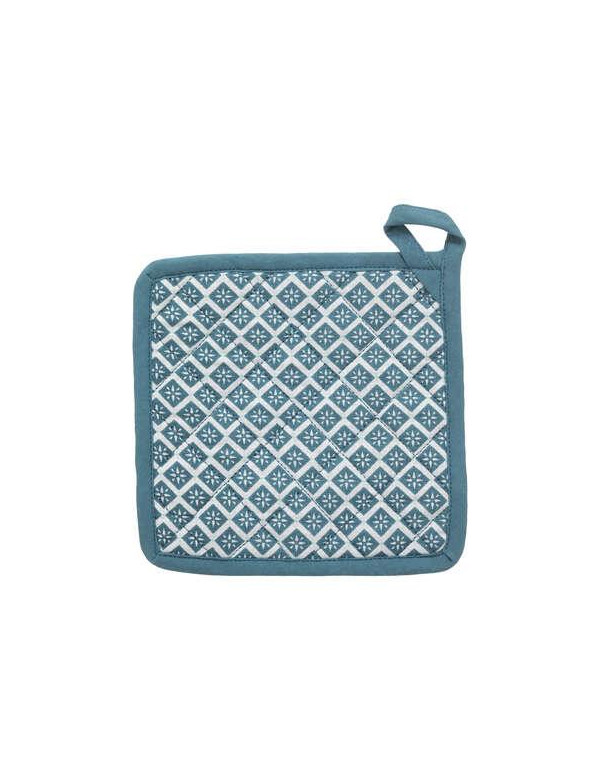 Lot de un gant plus une manique en coton bleu canard modèle Tikal.Atmosphéra, createur d'intérieur.