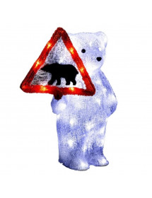 29,16 €0 ObjetDécoration de Noël lumineuse représentant un ours polaire portant un panneau de signalisation.